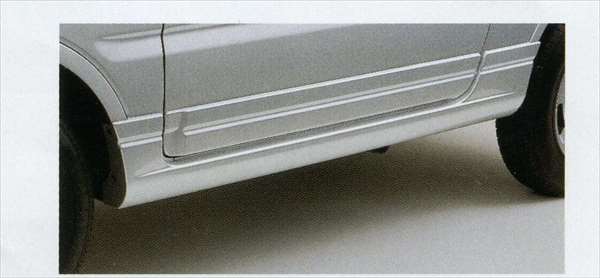 純正サイドステップのセット品のドアモールをつけないことで、リアタイヤ前方に段差ができる。そこで空気が外側へ跳ねることでリアタイヤハウス内が陰圧となりタイヤハウス内の空気を吸い出してくれることで、リアタイヤの空気抵抗が減ると考えたのだ。